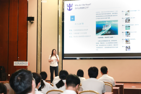 5月22日,邮轮旅游系成功举办“蓝海启航:邮轮教育空间创新与职业发展”专题分享会。本次活动特别邀请皇家加勒比集团全球市场招聘官Miranda女士,面向2023级皇家加勒比国际邮轮乘务管理及邮轮烹饪专业订单班全体学生及邮轮系专业教师团队,开展了一场集教学成果展示与职业发展指导于一体的专业交流分享活动。
